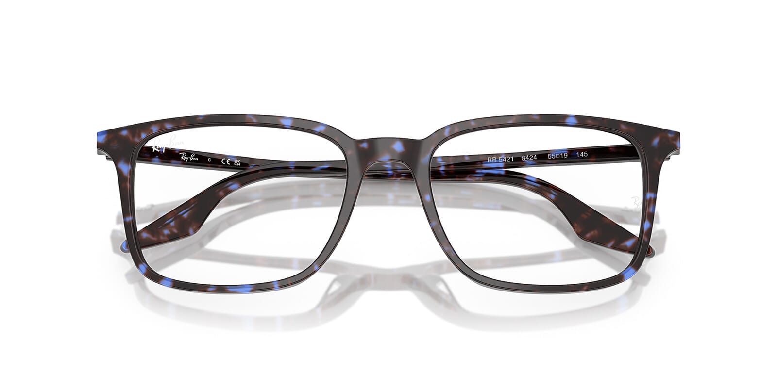 This rectangular Ray-Ban optical comes in a havana blue tortoiseshell frame.