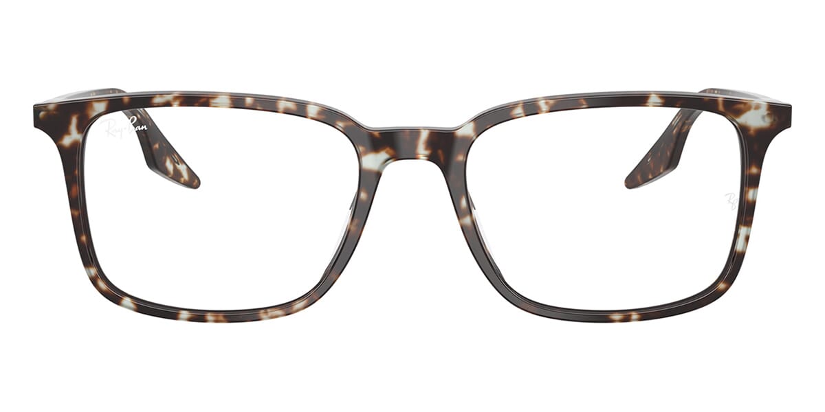 This rectangular Ray-Ban optical comes in a havana yellow tortoiseshell frame.