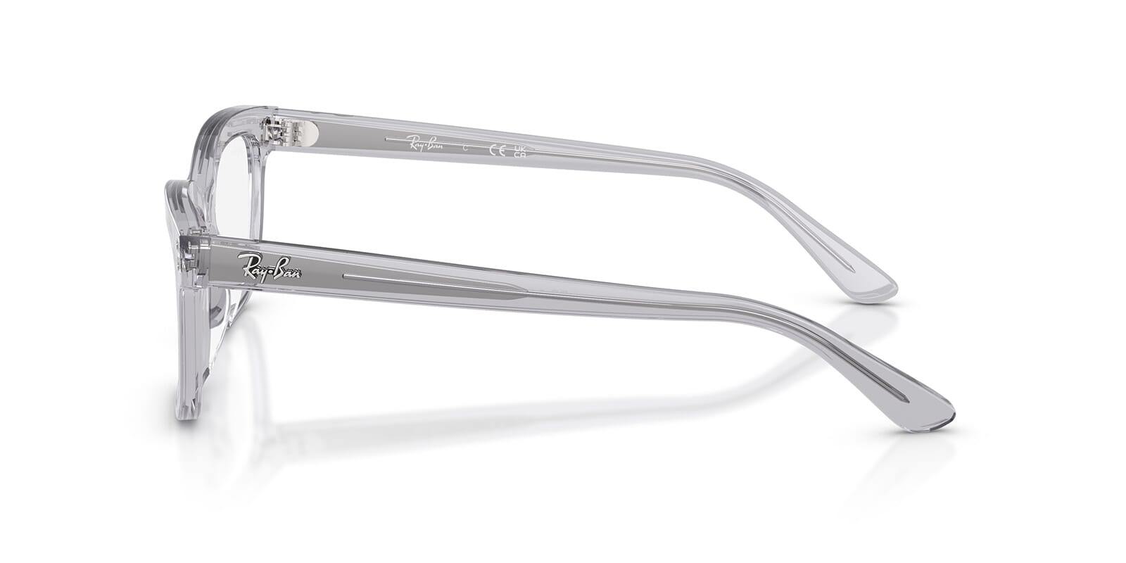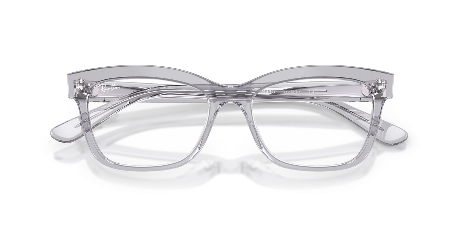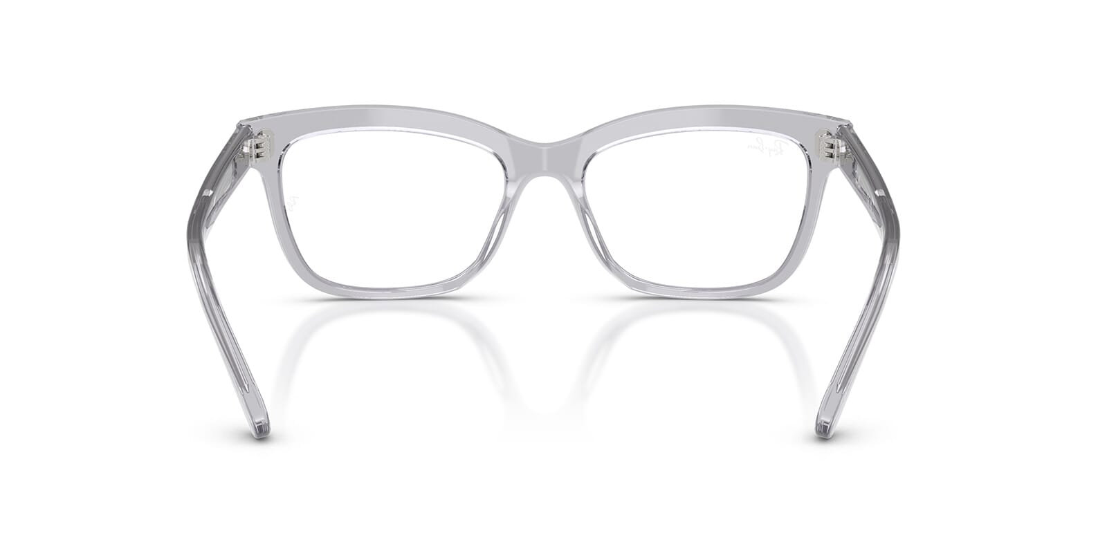 This square Ray-Ban optical comes in a light grey crystal frame.