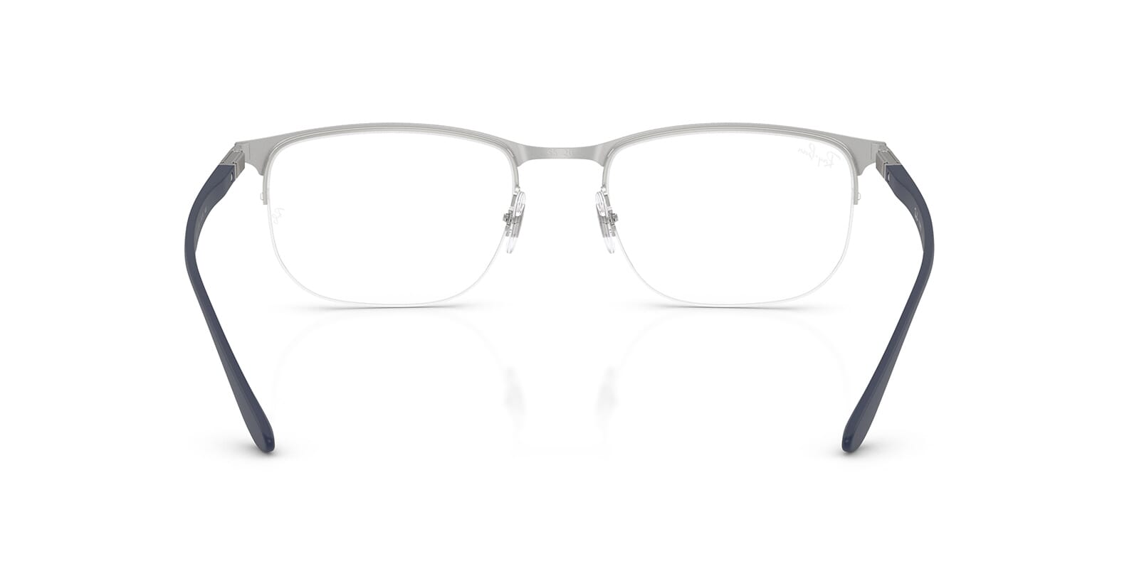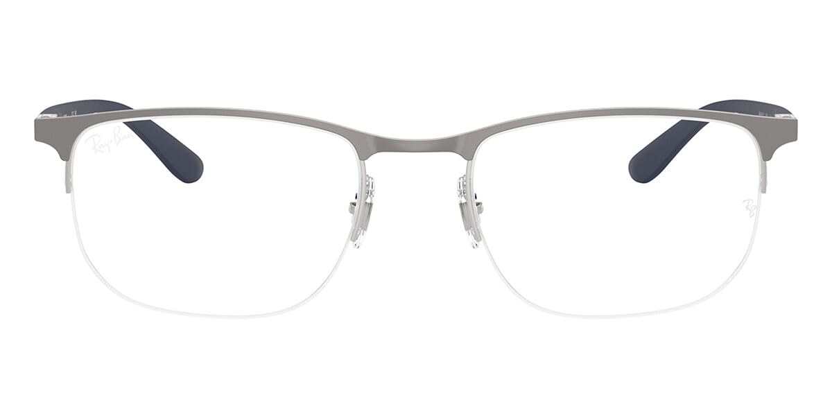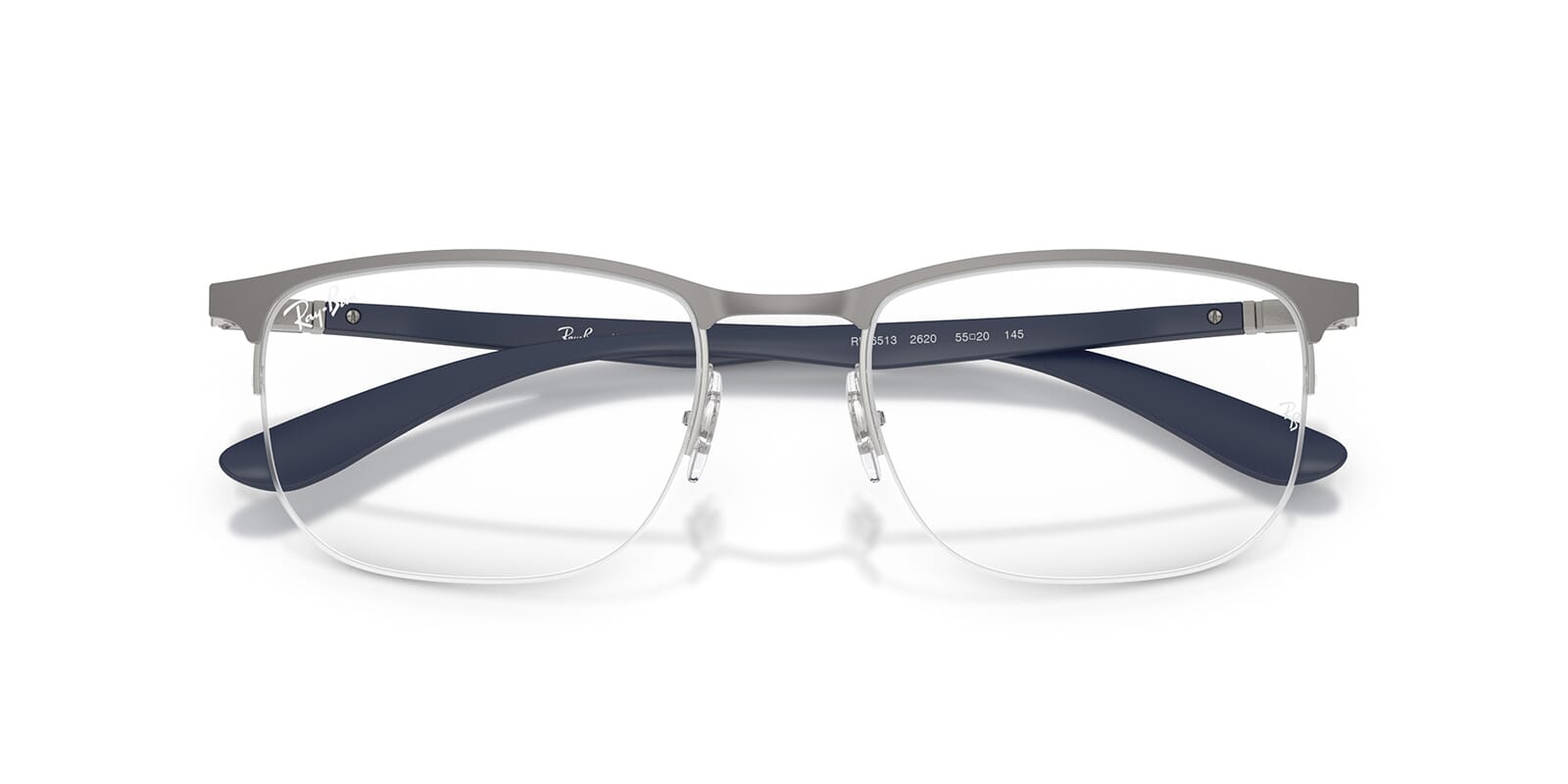 This rectangular Ray-Ban optical comes in a matte gunmetal on silver frame.