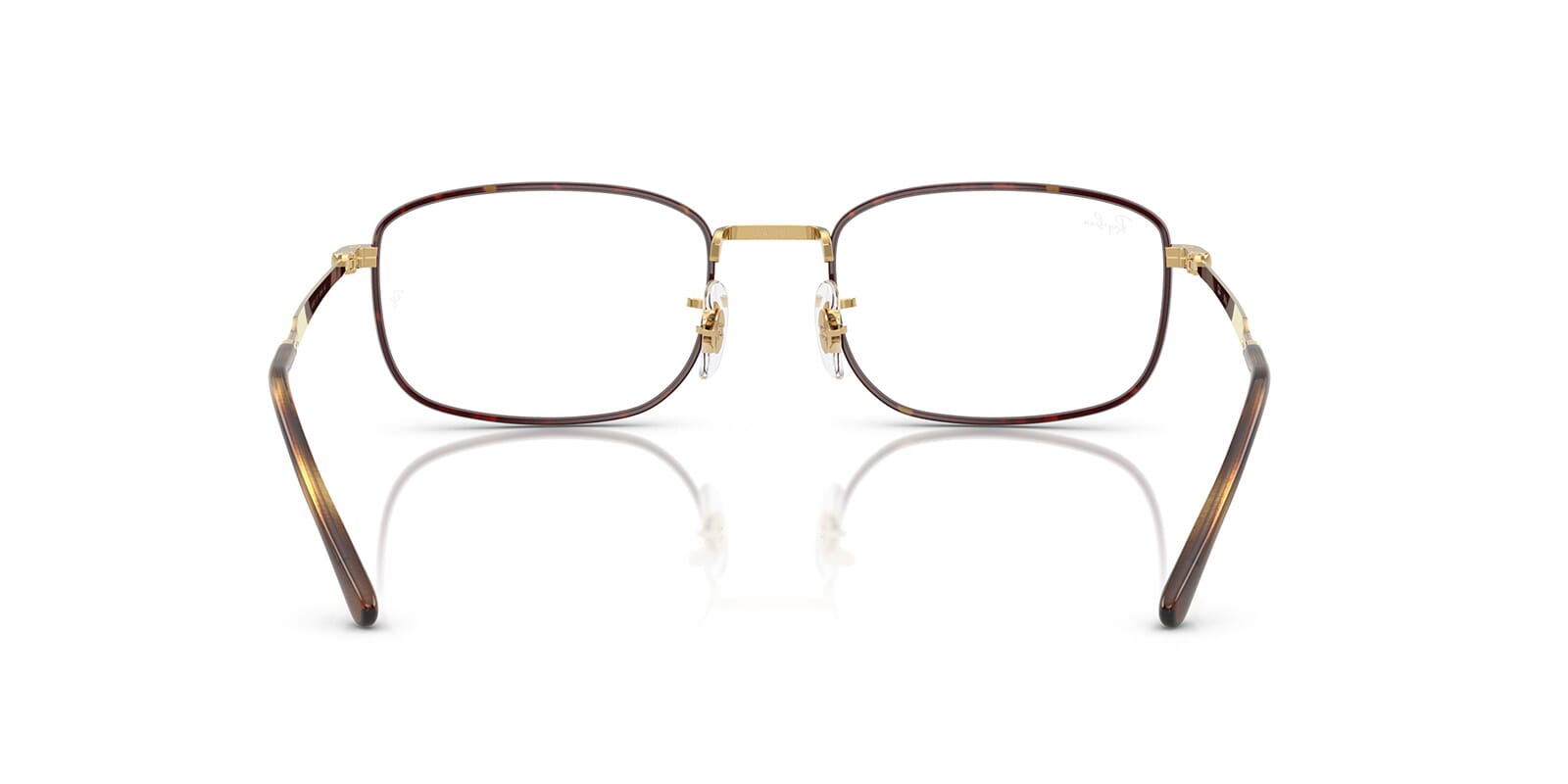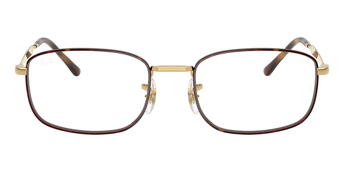 This rectangular Ray-Ban optical comes in a havana on arista gold frame.