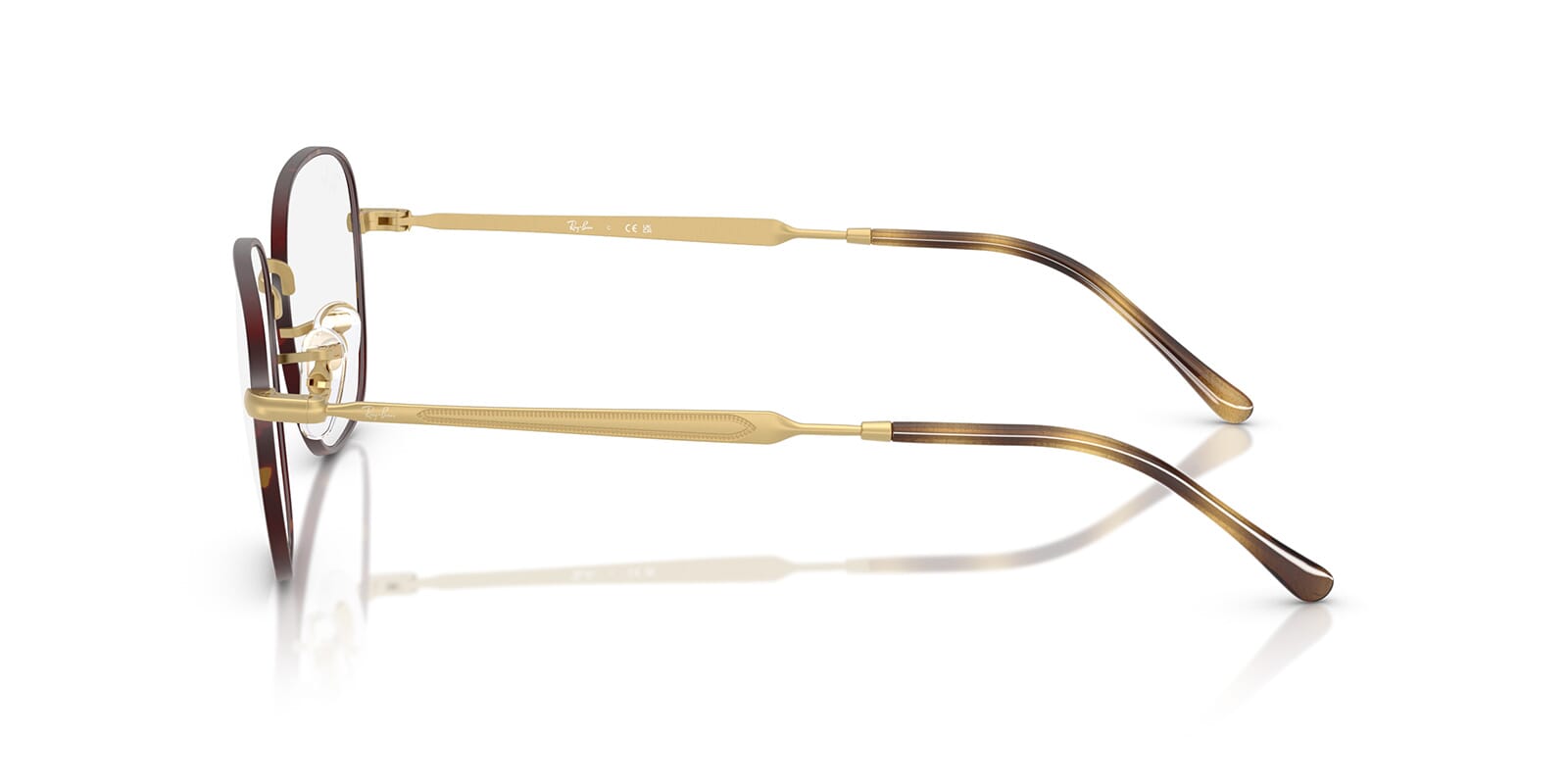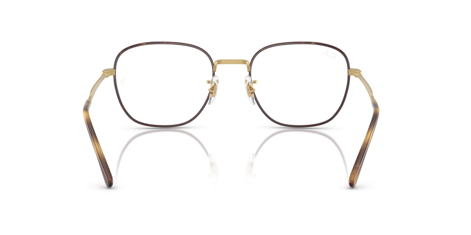 This square Ray-Ban optical comes in a matte havana on matte arista gold frame.