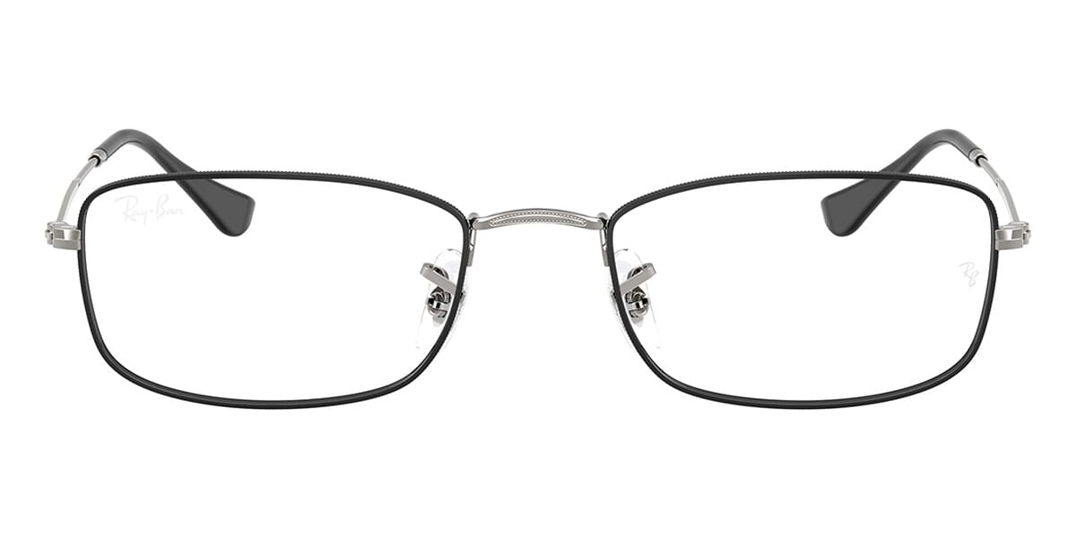 This rectangular Ray-Ban optical comes in a black on gunmetal frame.