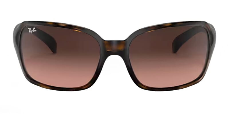 This wraparound Ray-Ban sunglass comes in a shiny havana frame with brown to pink gradient lenses.