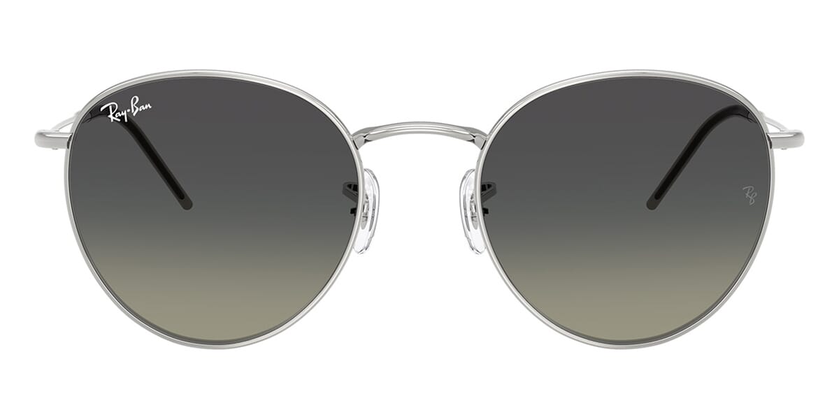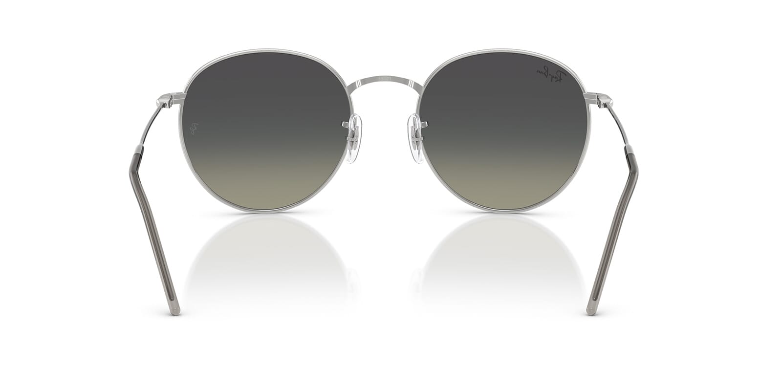 This round Ray-Ban sunglass comes in a silver frame with grey gradient lenses.