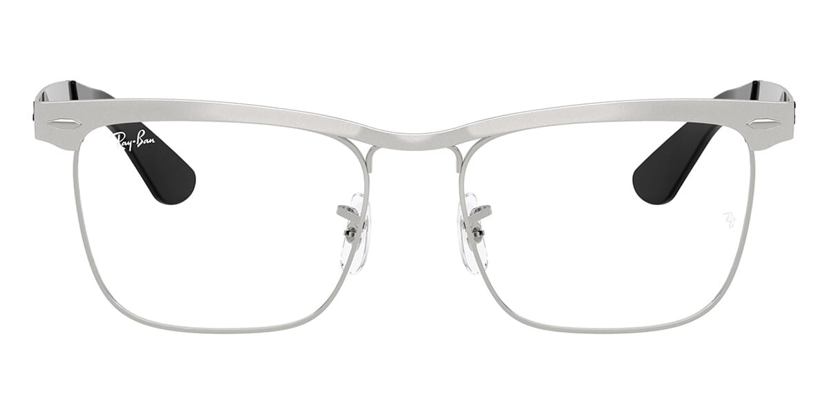 This square Ray-Ban optical comes in a sandblasted silver frame.