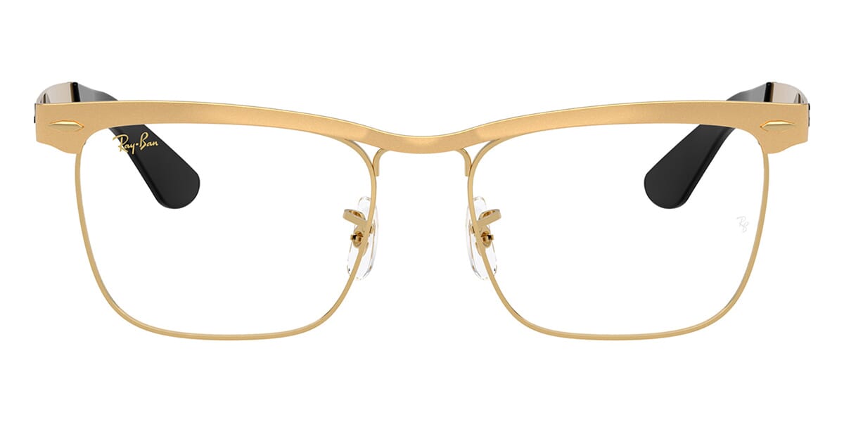 This square Ray-Ban optical comes in a sandblasted legend gold frame.