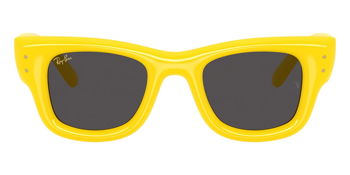 This square Ray-Ban sunglass comes in a yellow frame with ultra black lenses.