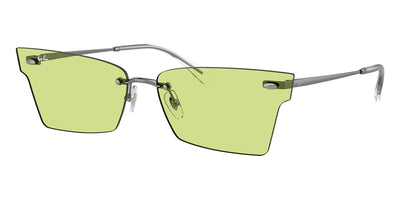 This rectangular Ray-Ban sunglass comes in a light gold frame with dark grey lenses.