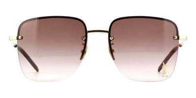 This square Saint Laurent sunglass comes in a gold frame with brown with gold mirror lenses.