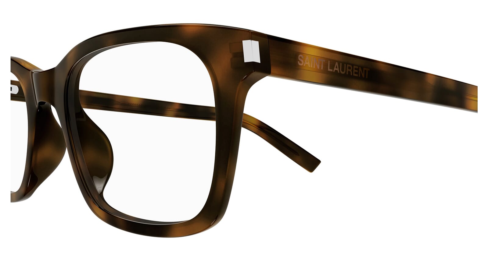 This square Saint Laurent optical comes in a shiny dark havana frame.
