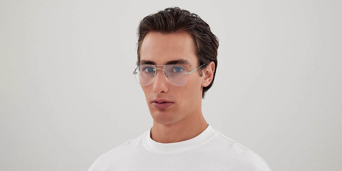 This aviator Saint Laurent optical comes in a silver frame.
