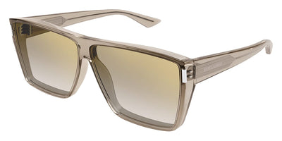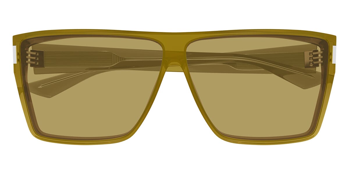 This square Saint Laurent sunglass comes in a shiny crystal ocra frame with brown lenses.