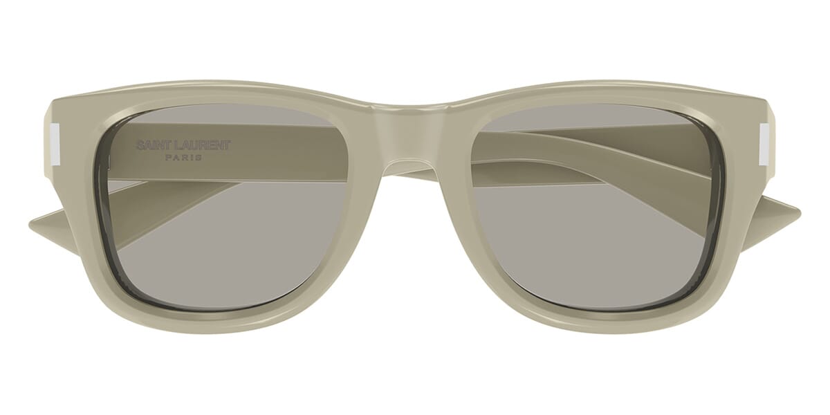 This square Saint Laurent sunglass comes in a khaki green frame with grey lenses.