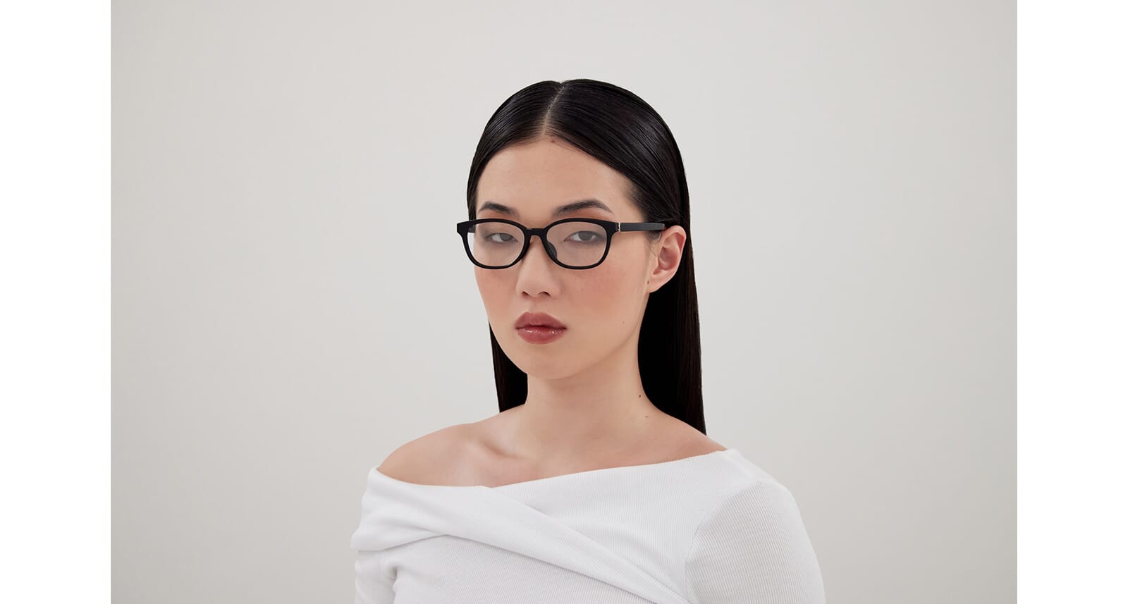 This cat eye Saint Laurent optical comes in a shiny black frame.