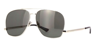 This aviator Saint Laurent sunglass comes in a matte black frame with grey with light mirror lenses.