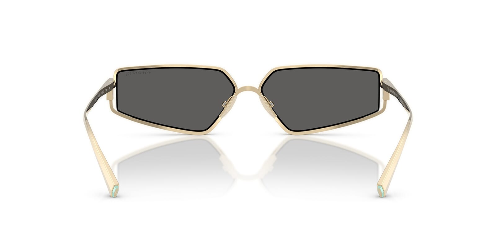 This rectangular Tiffany sunglass comes in a pale gold plated frame with dark grey lenses.