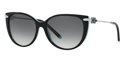 This cat eye Tiffany sunglass comes in a black frame with azure gradient blue lenses.