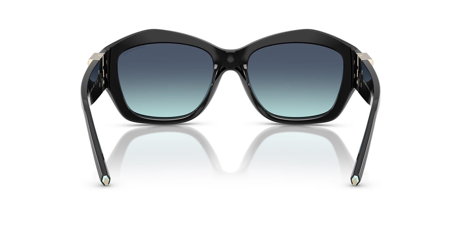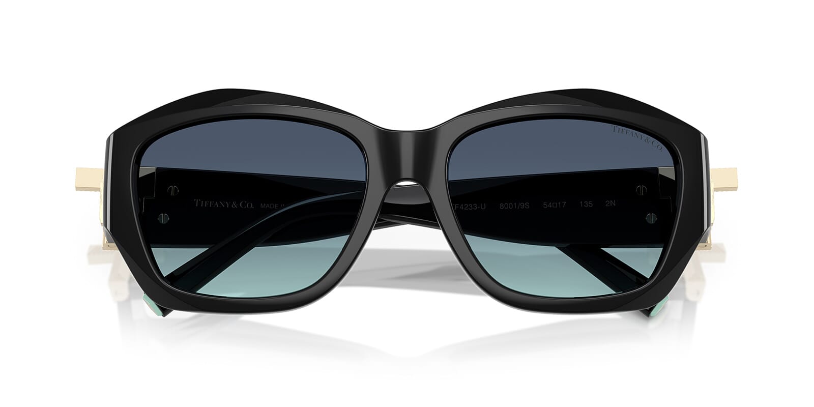 This square Tiffany sunglass comes in a black frame with azure blue gradient lenses.