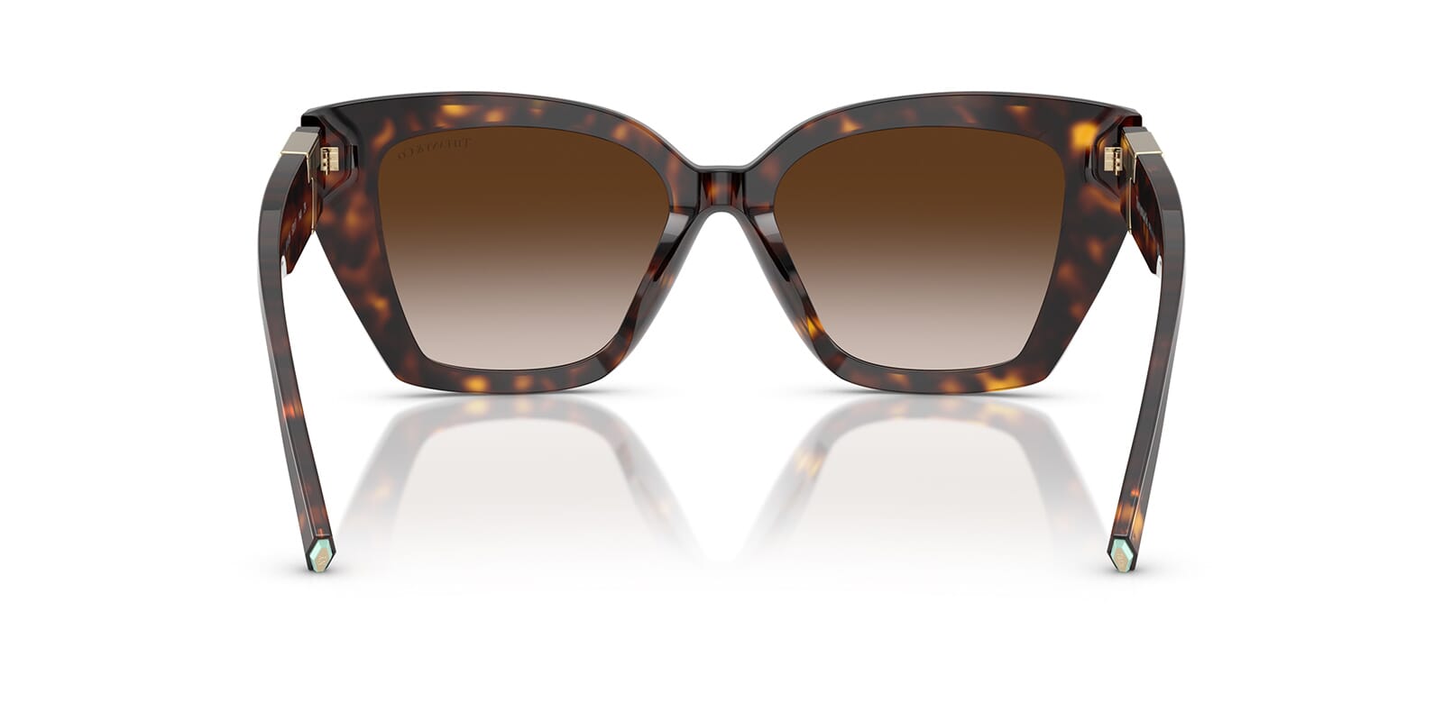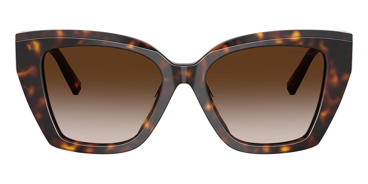 This square Tiffany sunglass comes in a havana frame with brown gradient lenses.