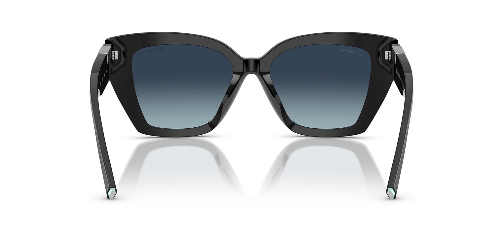 This square Tiffany sunglass comes in a black frame with azure to dark blue gradient polarised lenses.
