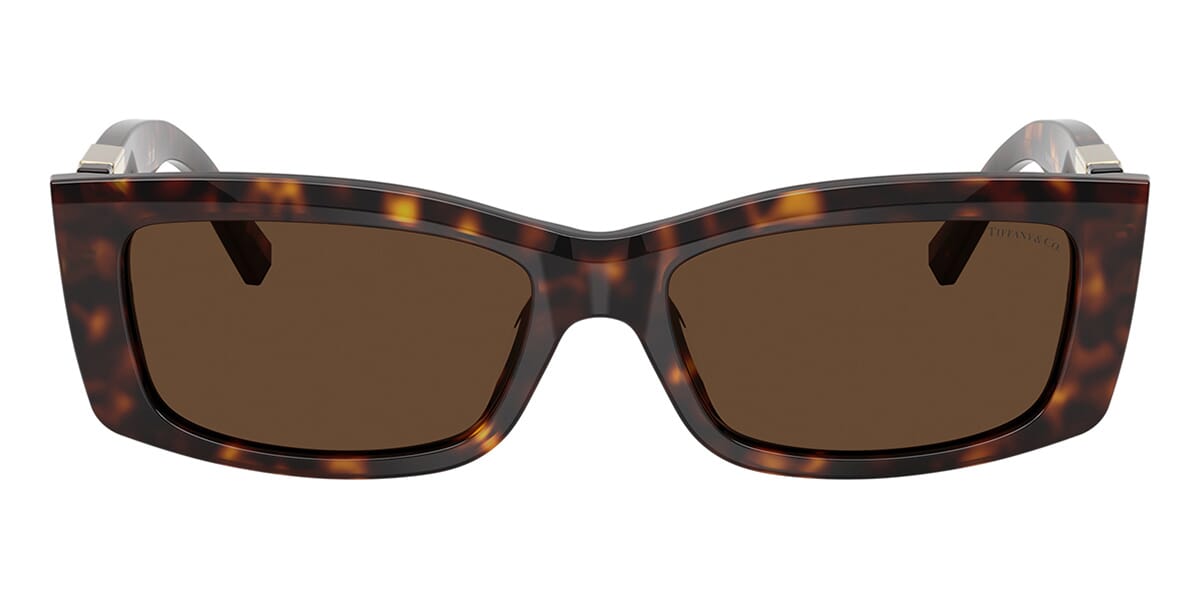 This rectangular Tiffany sunglass comes in a havana frame with light brown lenses.