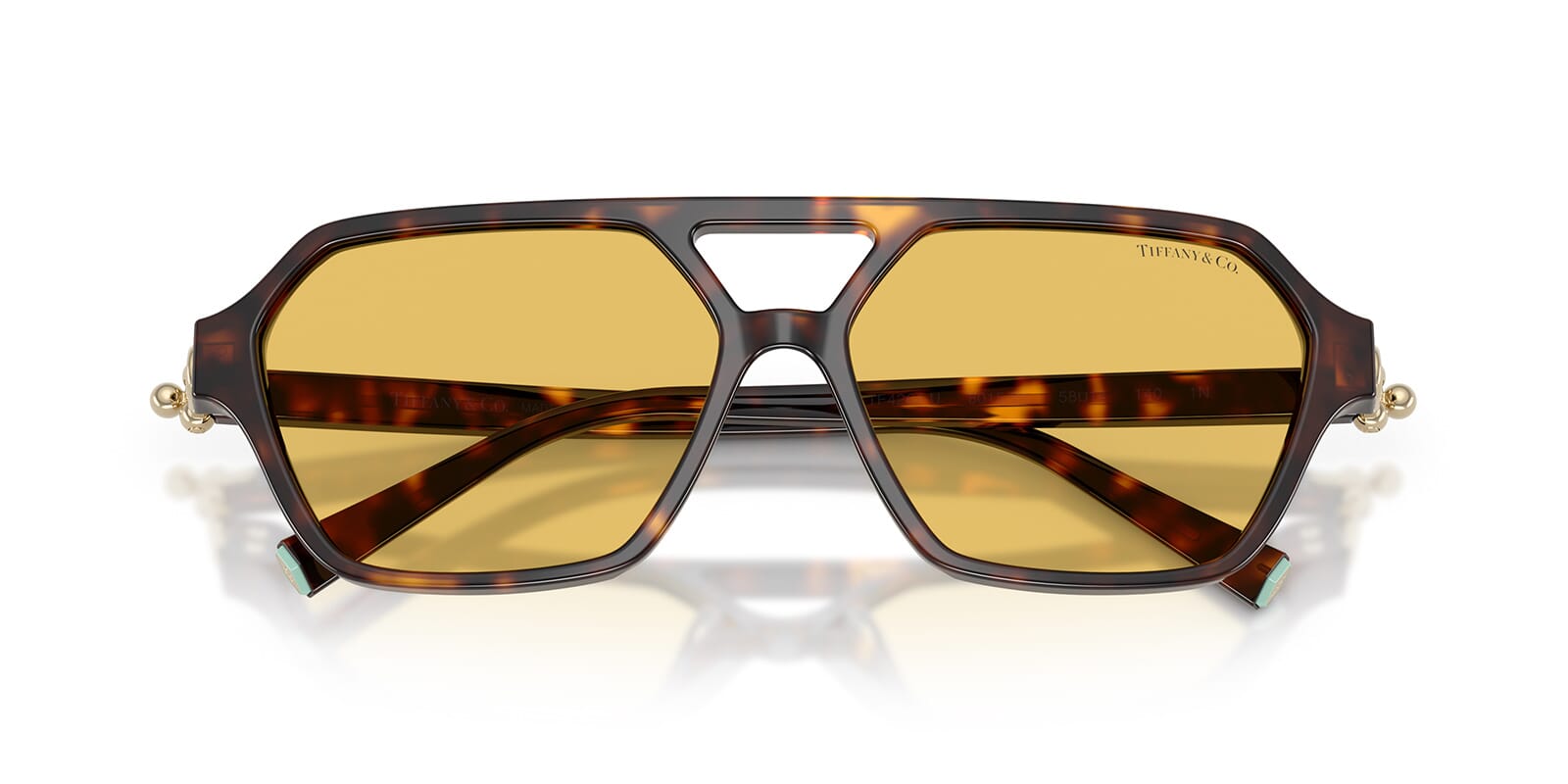 This square Tiffany sunglass comes in a havana frame with yellow lenses.