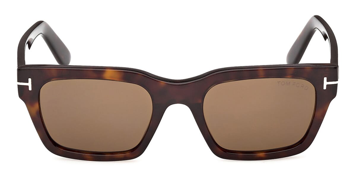 This square Tom Ford sunglass comes in a dark havana frame with brown lenses.
