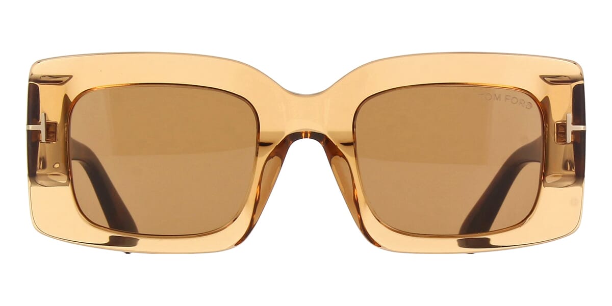 This square Tom Ford sunglass comes in a shiny brown crystal frame with light brown lenses.