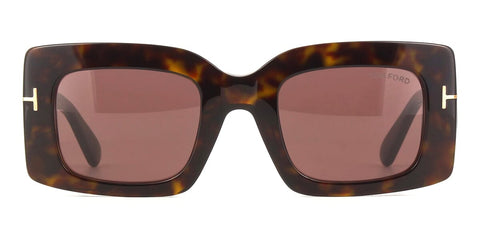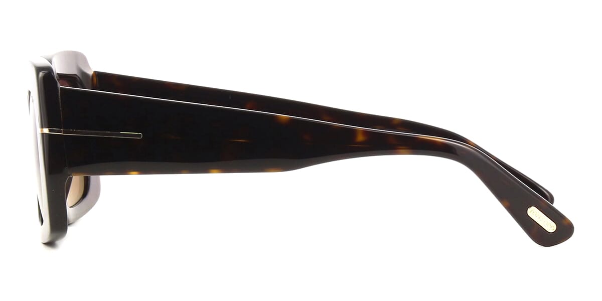 This square Tom Ford sunglass comes in a shiny dark havana frame with light brown lenses.