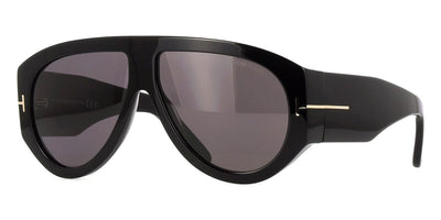 This aviator Tom Ford sunglass comes in a shiny black frame with brown lenses.