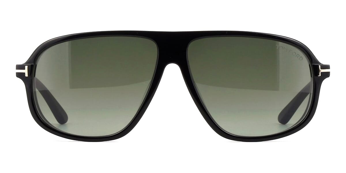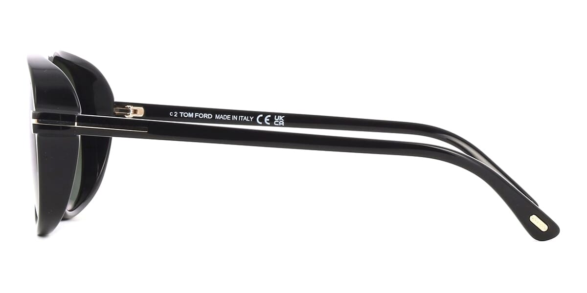 This aviator Tom Ford sunglass comes in a shiny black frame with green gradient lenses.
