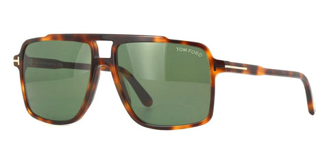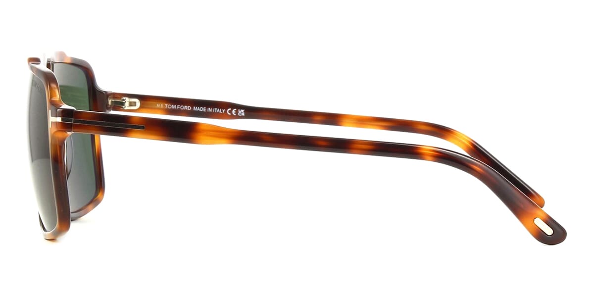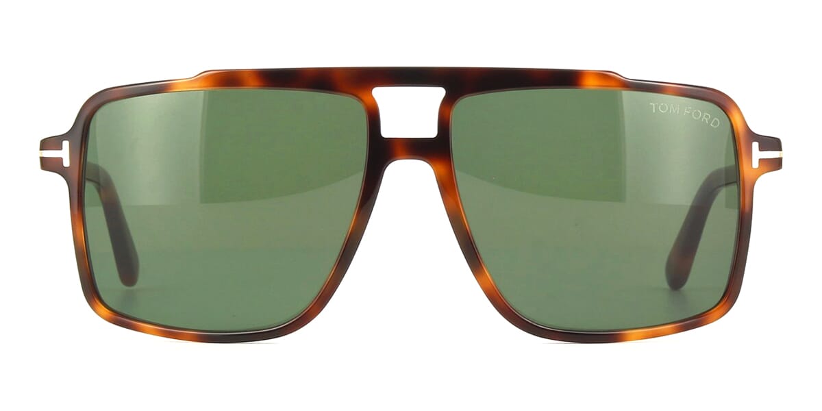 This square Tom Ford sunglass comes in a shiny dark havana frame with green with light mirror lenses.