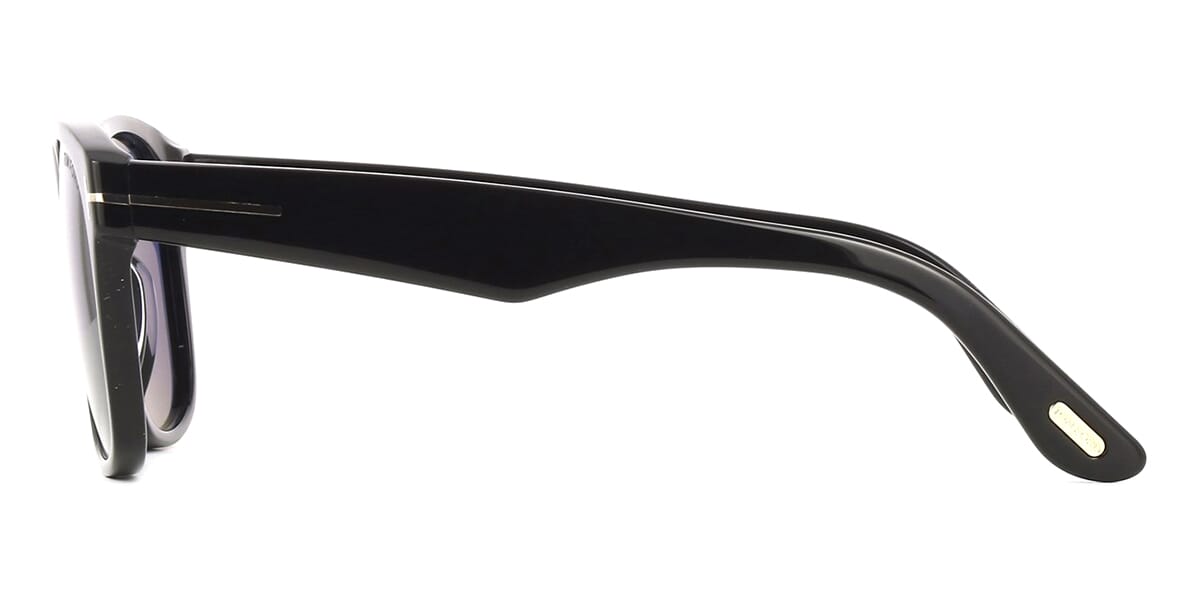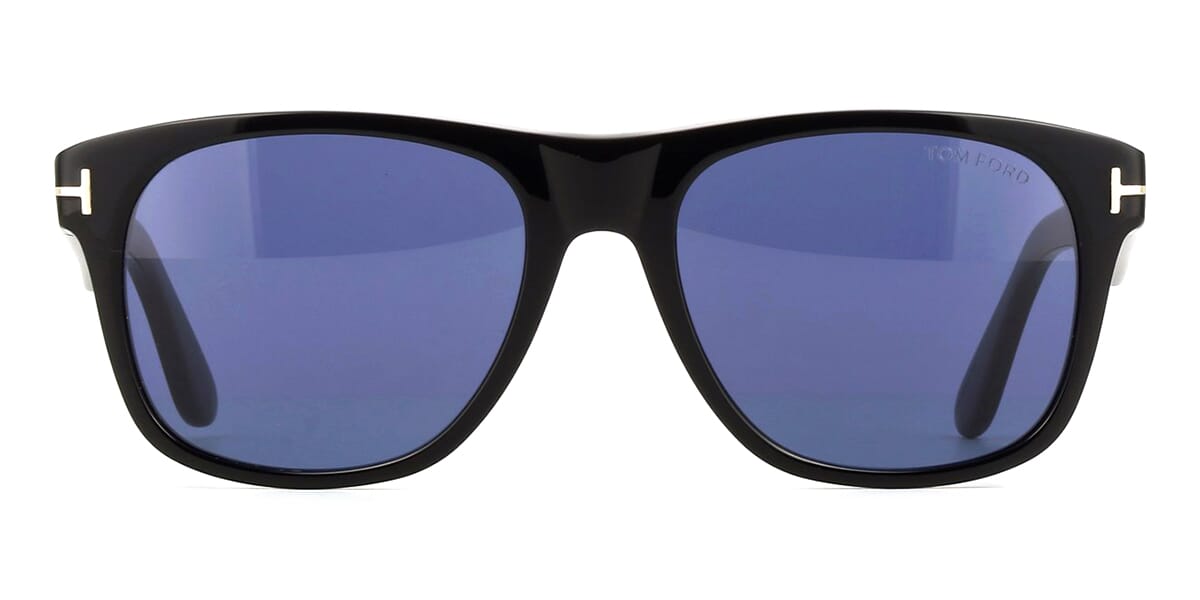 This square Tom Ford sunglass comes in a shiny black frame with blue with light mirror lenses.