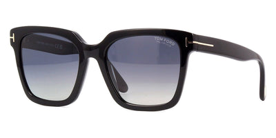 This square Tom Ford sunglass comes in a shiny black frame with smoke gradient lenses.