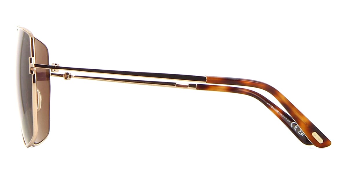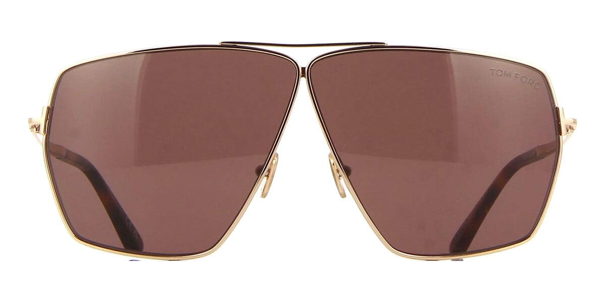 This square Tom Ford sunglass comes in a shiny rose gold frame with dark brown lenses.