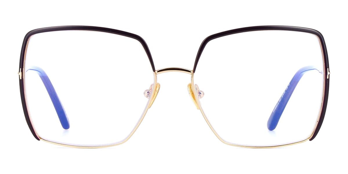 This square Tom Ford optical comes in a shiny purple on gold frame.