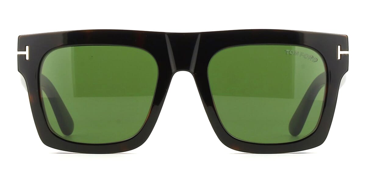 This square Tom Ford optical comes in a shiny dark havana frame with green with light mirror magnetic clip-on lenses.