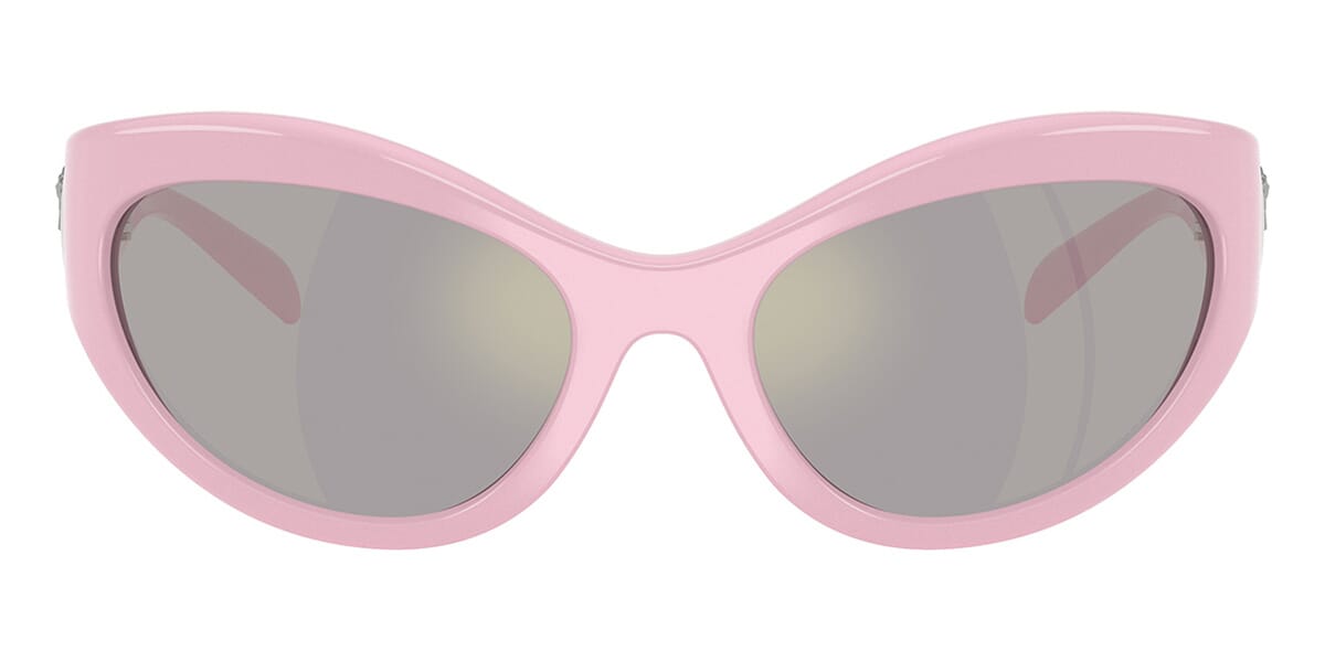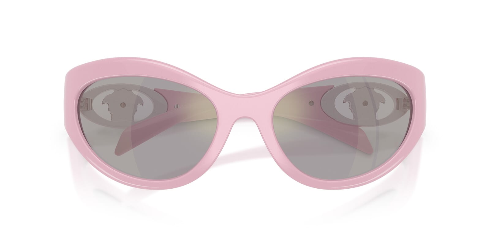 This cat eye Versace sunglass comes in a pink frame with pink with rose gold mirror lenses.