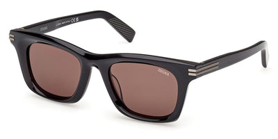 This square Zegna sunglass comes in a dark havana frame with light brown lenses.