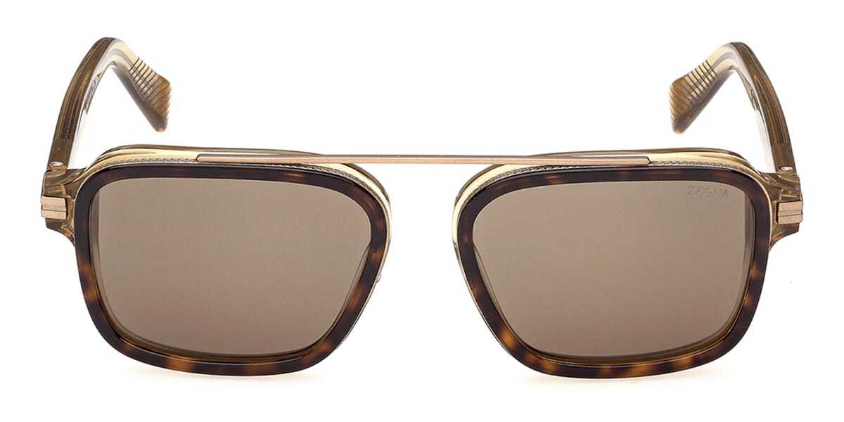 This square Zegna sunglass comes in a havana with shiny crystal light yellow frame with brown lenses.