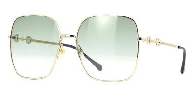 This gold full-rim square metal sunglass with grey gradient lenses is enhanced by the addition of the iconic Horsebit motif, paying homage to the House's equestrian heritage.